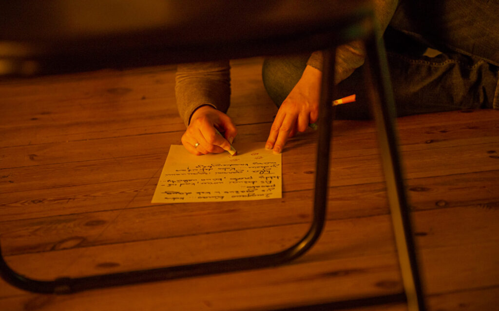 Vienas pagrindinių tyrimo metodų – autentiško judesio praktika, su kuria A. Kriukelytė ir R. Birietė susidūrė Kūno ir judesio terapijos studijų Londone metu. Jos esmė – sekti vidiniais kūno impulsais atliekant įvairius judesius, arba likti sustingus pozoje tol, kol kūnas pats panorės judėti kitur. „Praktikuodamasi pastebėjau, kad autentiškas judesys gali būti gili patirtis tiek judančiam, tiek stebinčiam“, pasakoja A. Kriukelytė ir teigia, kad judėti tokiu būdu yra kur kas sunkiau nei atrodo, tačiau pavykusius pavyzdžius stebėti nepaprastai įdomu – iš kūne kylančių impulsų atsirandančios pozos ir judesiai įtraukia, užhipnotizuoja. „Norisi tai panaudoti kuriant šokio meną, tačiau iškyla pamatinė problema: meno kūrinys paprastai turi rėmus, kuriuose atsidūręs autentiškas judesys rizikuoja tapti nebe toks autentiškas, vadinasi – mažiau paveikus“, procesus kvestionuoja kūrėja.