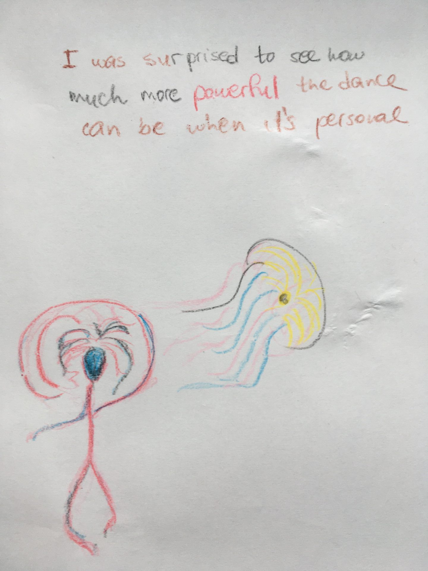 A. Kriukelytė pasakoja kartą stebėjusi vaikus, gimtadienio proga dovanojančius šokį mokyklos administratorei: „darbuotojos žodžiai „man dar niekas gyvenime nėra dovanojęs šokio“ man išliko kaip įrodymas, kad asmeniškai padovanotas šokis yra ypatinga patirtis, kurią panorau suteikti ir kitiems žmonėms. Tuomet iškilo klausimas: koks turi būti šokis, kad jis taptų dovana vienam konkrečiam asmeniui? Tyrimo metu paaiškėjo, kad standartas negali egzistuoti, nes kiekvienas žmogus dovanas priima skirtingai: kažkas džiūgauja, kažkam nedrąsu, o kažkas negali pasidžiaugti, iškart susirūpindamas, ką reikia duoti mainais.“