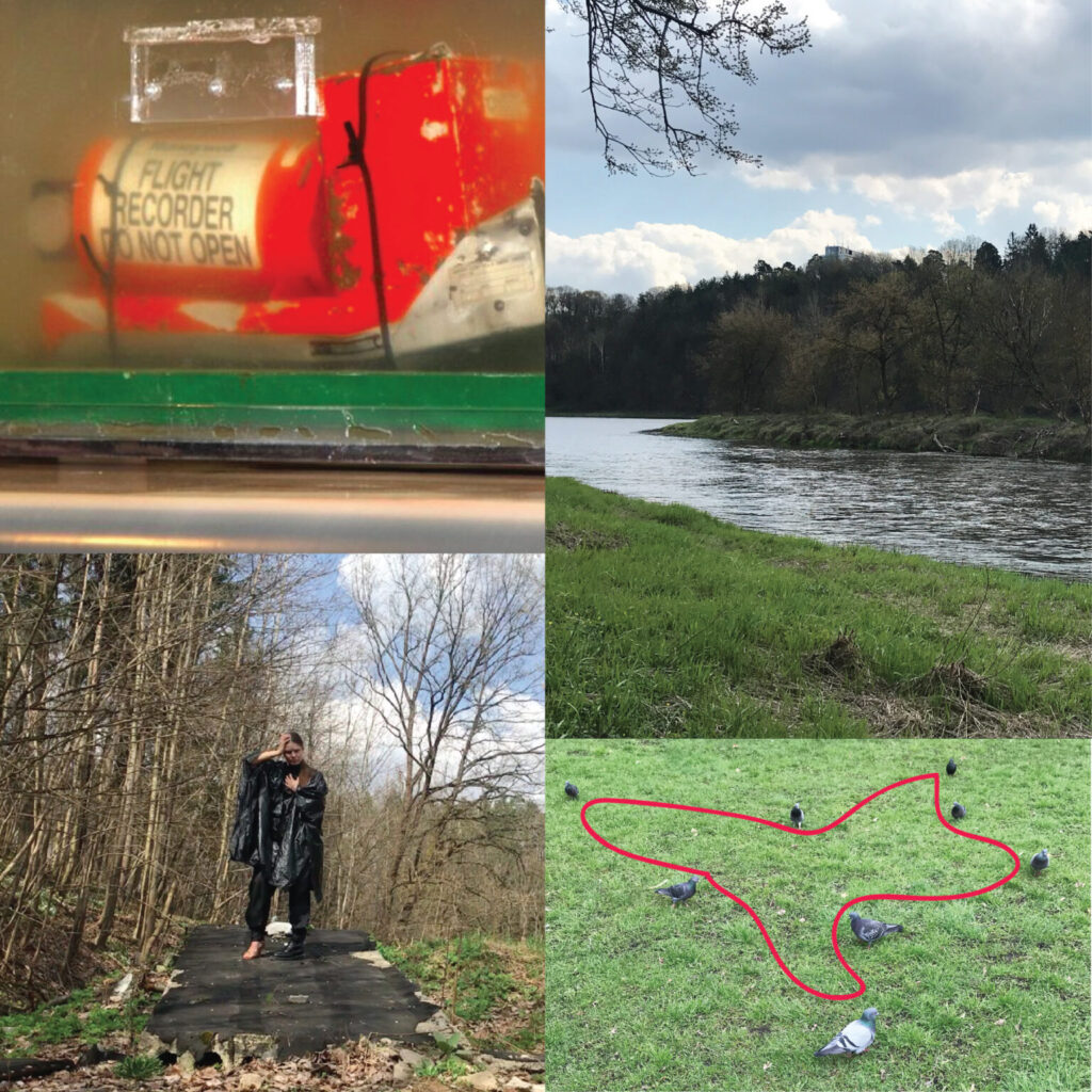 “My research has three cornerstones, three spaces: an island, a black square, and a zero state. An island is a fictional space, influenced by imaginary circumstances, in which a person finds himself having lost his memory, not realizing how he got here, not knowing that he is a person, not remembering his past. Here, gradually, re-experiencing the environment and himself, he begins to remember certain elements of his personal and common memory of humanity. The black square is a recurring element found in my drawings, which I connect with movement practices and free flow of thoughts, expressed in text and voice. My action in this space is driven by key questions: what do I do with a black square? And how do I set in motion a black square? The third space is a zero state in which the past and the present meet, fiction and reality, resistance is replaced by acceptance. All three spaces are like passing rooms, in which I‘m currently walking, allowing air to circulate freely, but I intend to stay in each longer and explore them more carefully.”