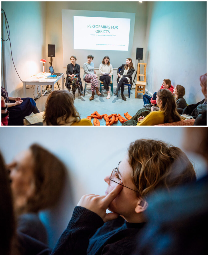 Tyrimą „Performing for Objects“ atliko šokėja, cirko ir fizinio teatro atlikėja Marija Baranauskaitė, pastaruosius kelis metus po Lietuvą ir Europą keliaujanti su spektakliu-eksperimentu „Sofa Project“, skirtu vietinėms sofoms. Kiti stebėtojai taip pat įleidžiami, tačiau jiems kūrėja palieka pasirinkimą – išeiti arba patiems tapti sofa.