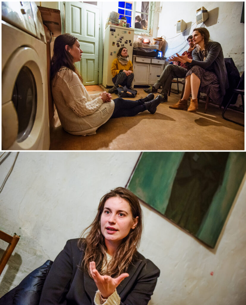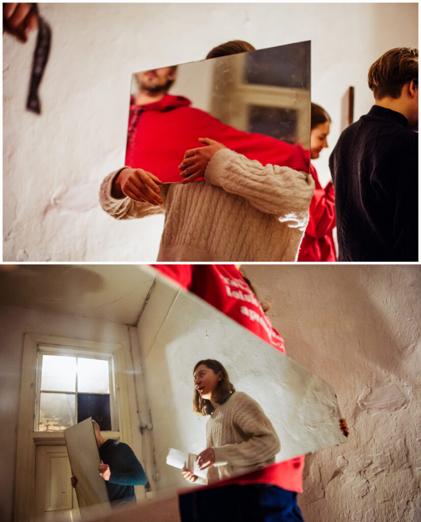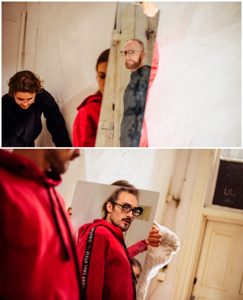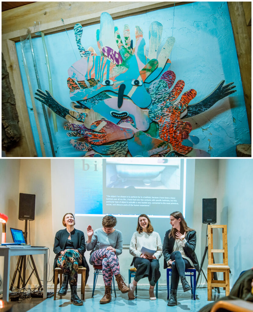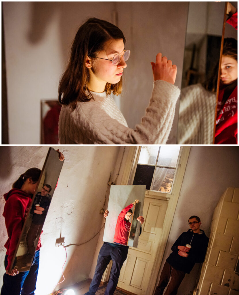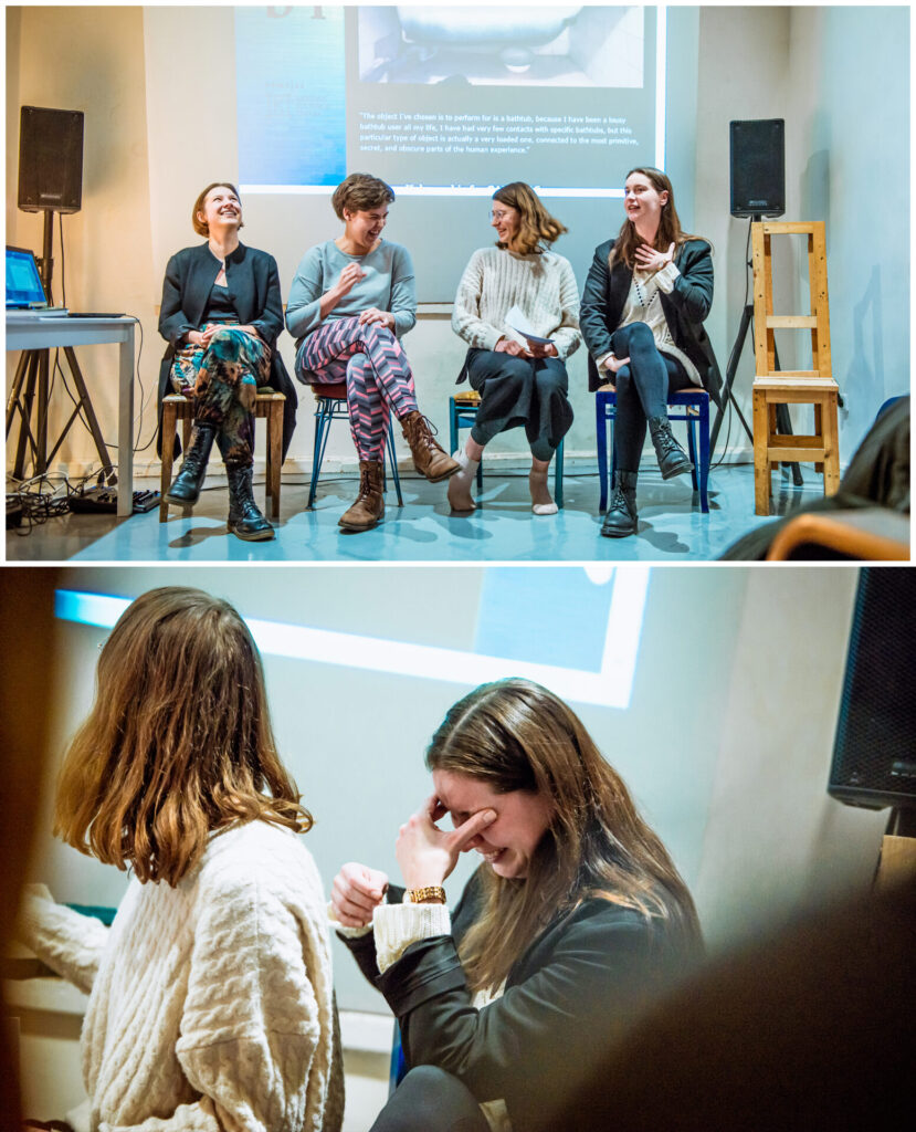 Į šią komandą įsijungė keturi kūrėjai: Greta Grinevičiūtė (pasirinkusi kurti skalbimo mašinoms), Denisas Kolomyckis (video kameroms), Barbora Šiaulytė (veidrodžiams), Kaisa Ling (vonioms). Aš jiems pateikiu pasiūlymus-užduotis kaip užmegzti kūrybinį santykį su jų pasirinktais objektais, o jie dalinasi savo atradimais. Šią savaitę jie turėjo nueiti į pasimatymą su objektu, pabūti kartu ir po to aprašyti, kuo šis daiktas skiriasi nuo žmogaus ir kuo jie yra panašūs. Norint sukurti kažką daiktui, minėtus skirtumus labai svarbu įsivardinti, nes daiktų publika tikrai labai skiriasi nuo mums įprastos žmogiškosios. Kitas etapas bus bandymas pačiam pabūti tuo daiktu, tuomet bandymas būti žmogumi, o tada – bandymas būti pusiau žmogumi pusiau tuo daiktu bei šio proceso refleksija. Manau, po tokių patirčių dalyviai bus pasiruošę pereiti į pasirodymo daiktui kūrimo etapą.