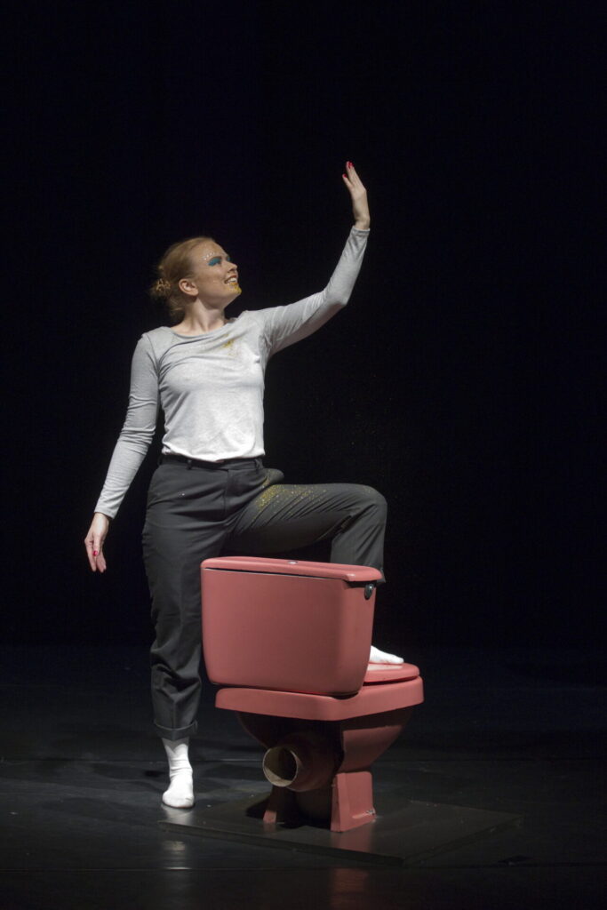Svarbiausias spektaklio akcentas – nuoširdumas judesyje, ma- žiau vaidybos, daugiau buvimo čia ir dabar, scenoje, salėje, kasdienybėje, gyvenime. Priimkit mane tokį, koks esu.
