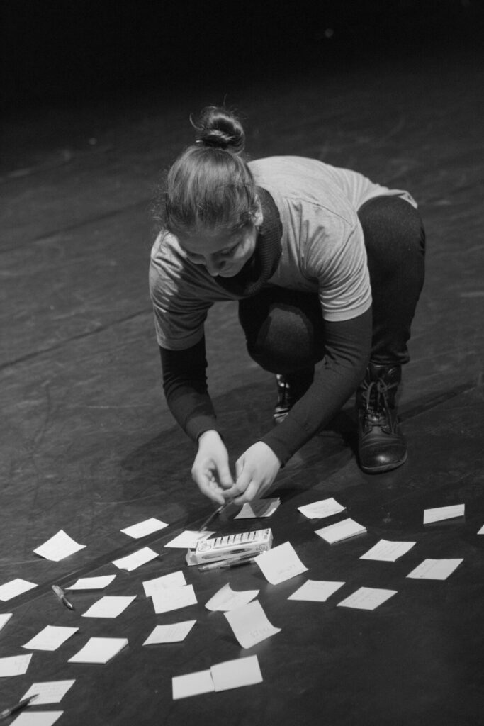 Kūrybos proceso pristatymas orientuojasi į galerijos erdvę. Tuo būdu kvestionuojamos/tyrinėjamos, proceso metu iškilusių temų ar idėjų, reprezentytavumo aspekto ribos ir jo tarpinės erdvės. Darbas sukurtas Vilniuje, bendradarbiaujant Andriui Katinui bei šokėjams ir visiems esant įspraustiems į griežtus laiko rėmus – savaitės laikotarpį.