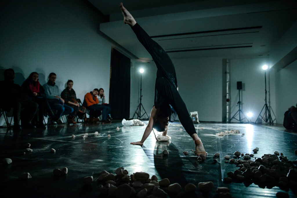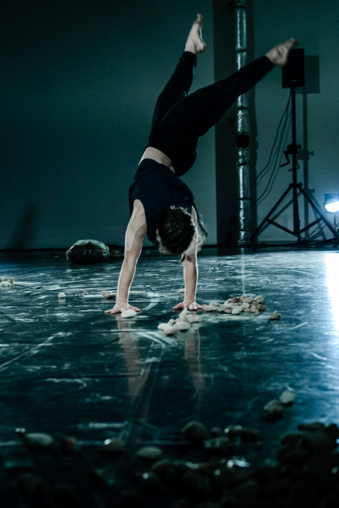 Šiuolaikinio šokio pasirodymas – instaliacija, kviečiantis susitikti su savimi ir vienas kitu. Perteikiama asmeninė istorija, kurios esybę savyje gali atrasti kiekvienas. Prigimties ieškojimas ir istorijos skaitymas kūne – nuolat besikeičiančiame ir sielos subtilybes atskleidžiančiame. Prigimties ieškojimas ir istorijos įrašymas akmenyje – švenčiausiame iš amžinųjų. Pasirodymo metu būsite kviečiami būti čia ir dabar, kvėpuoti, girdėti ir matyti šalia, nejaučiant ribų, erdvės, laiko ir kasdienybę lydinčių minčių.